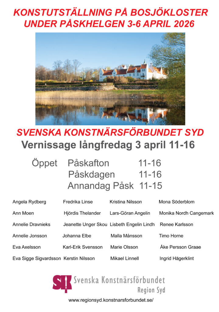 3 – 6 april Påskutställning Bosjökloster, Höör